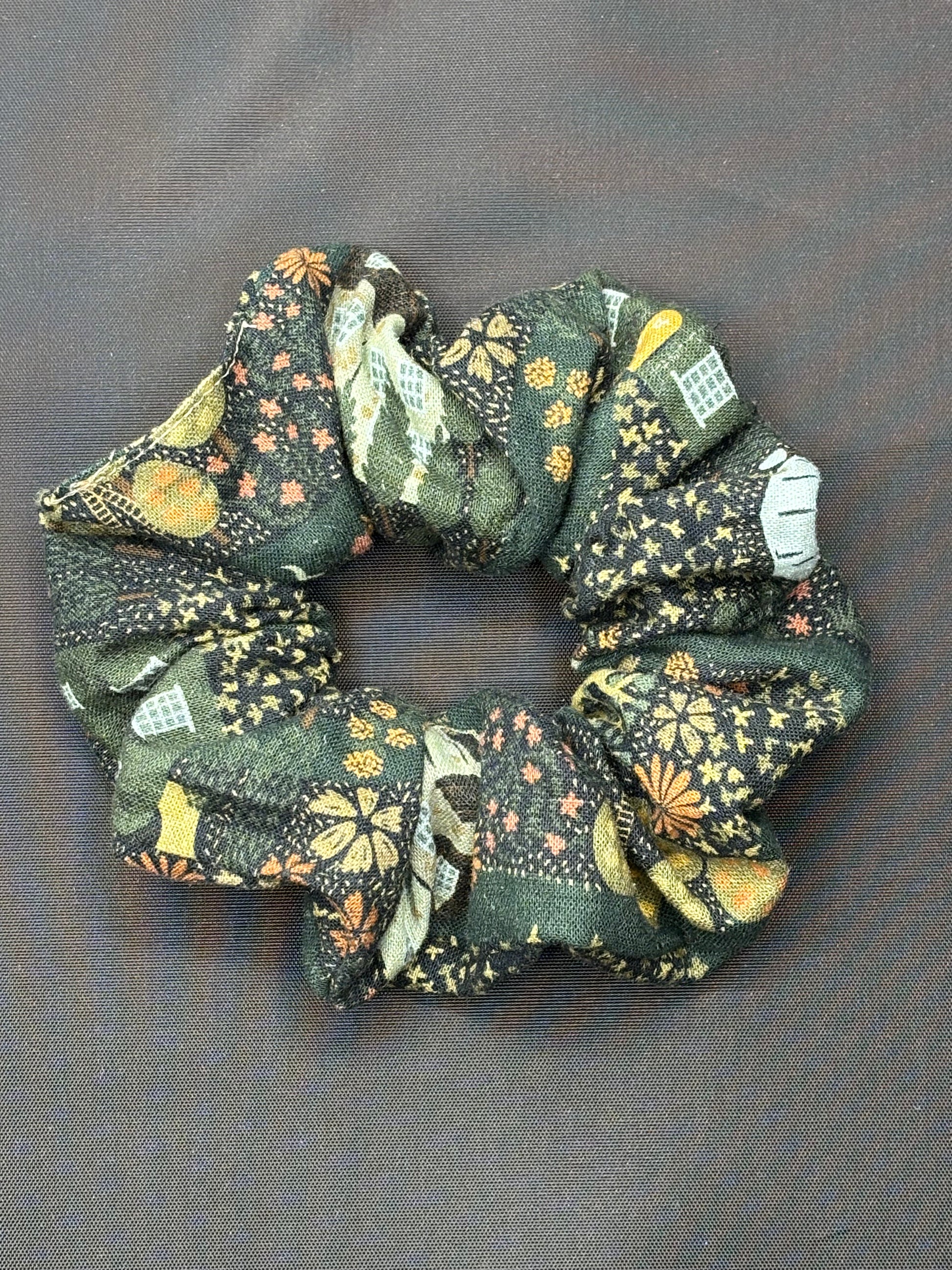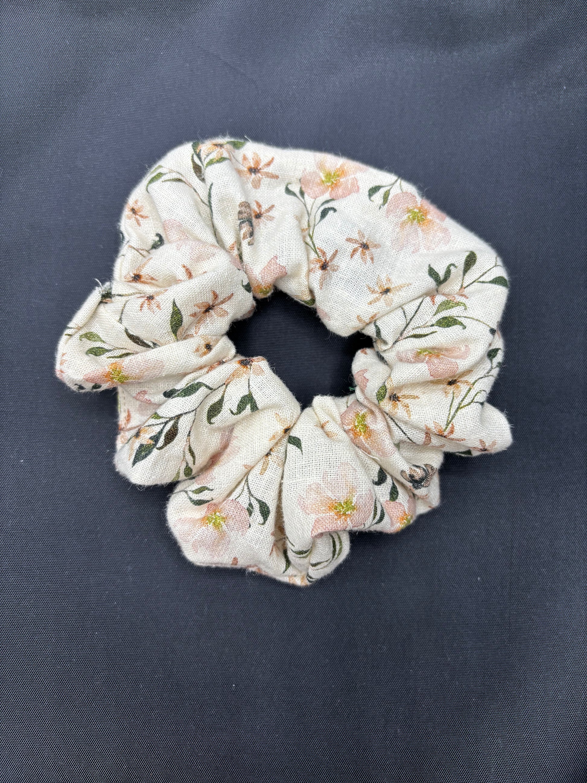 Fabric scrunchie made with cotton, or hemp/linen upcycled fabrics. Various fabrics will be stocked as they are completed so if your favorite is out of stock, check our website or Facebook page for updates!