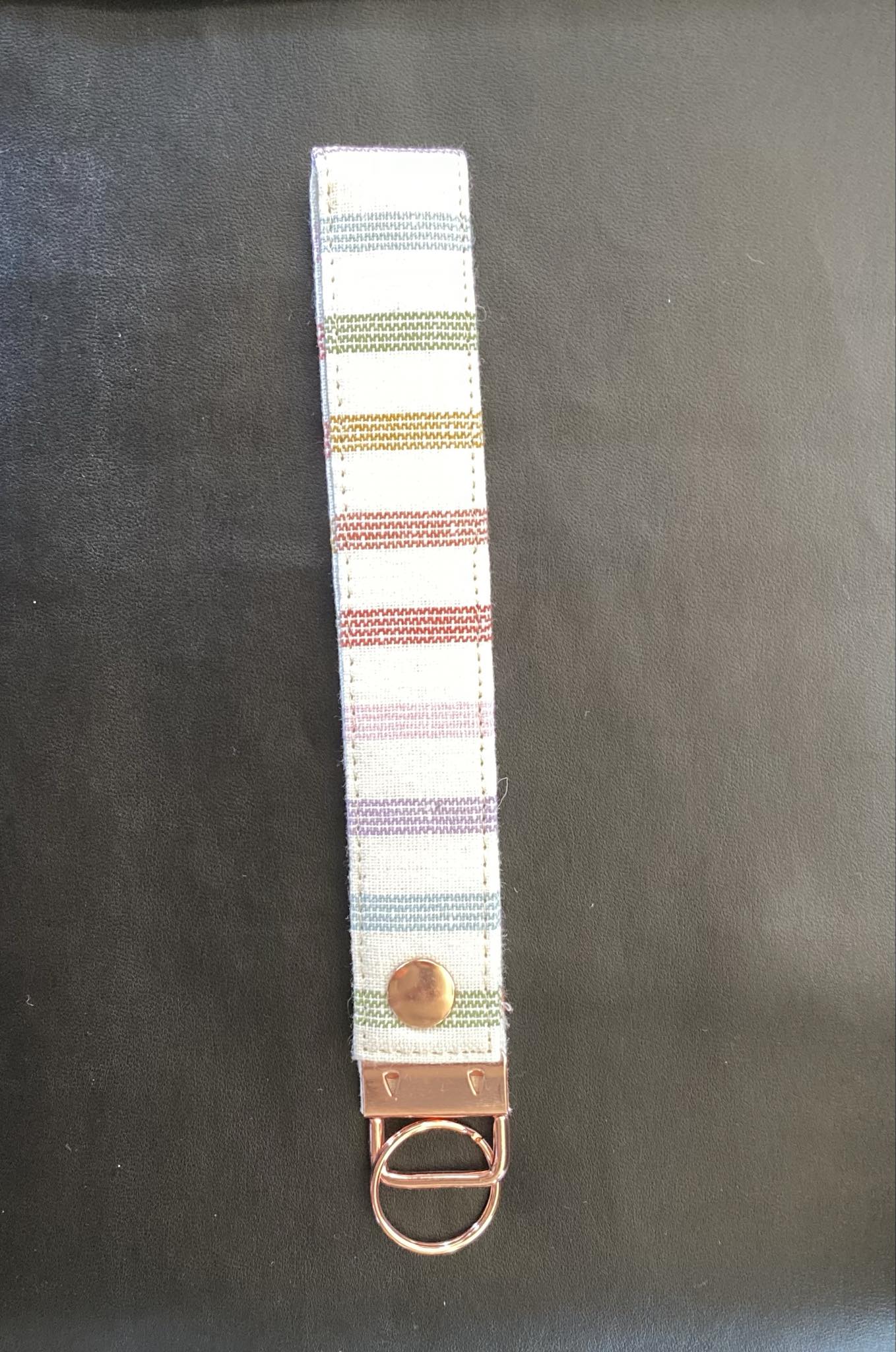 Various keychains in linen or hemp/cotton fabrics made from upcycled baby carriers. This item was made to enable us to reduce our textile waste and reuse fabrics that would otherwise go to a landfill.