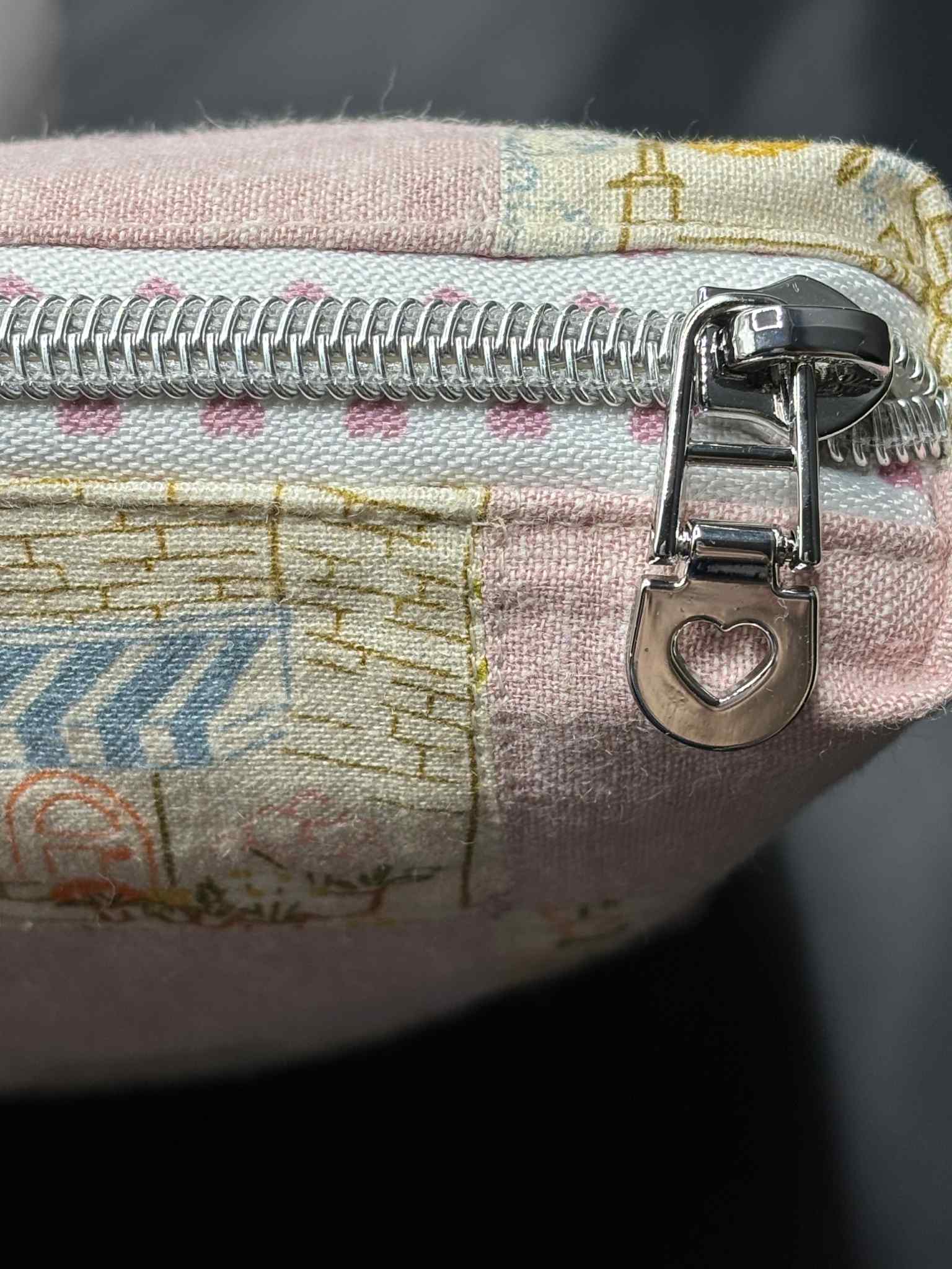 Quilted bags made with coordinating print and solid hope & plum fabrics, lined with quilted cotton and a matching zipper/zipper pull combination. Organize in style!
